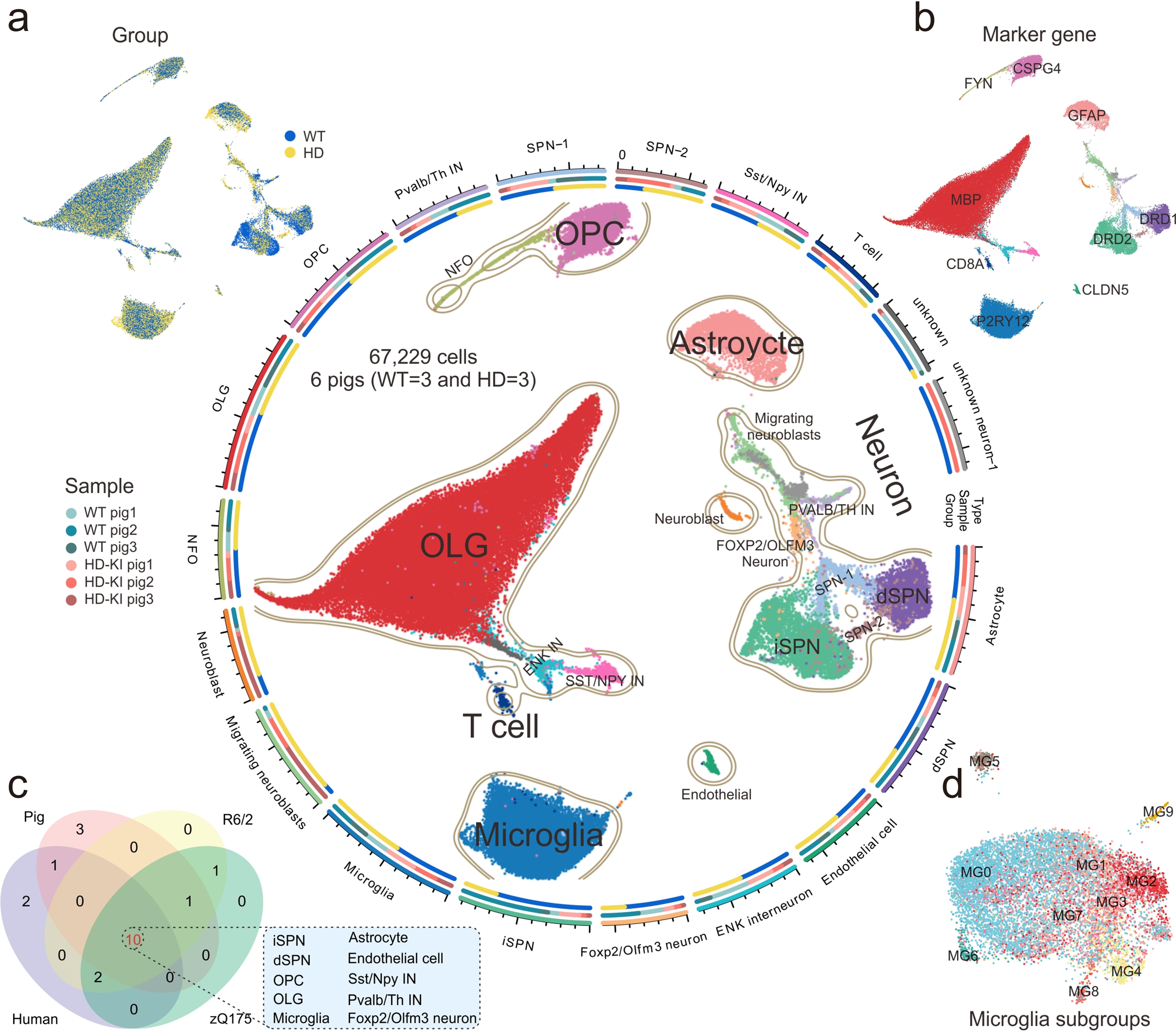 WT/HD-KI猪纹状体单细胞图谱