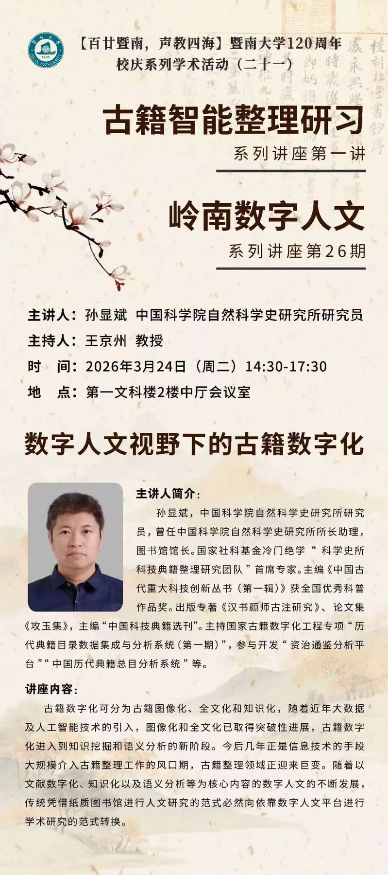 【百廿暨南,声教四海】校庆系列学术活动(二十一)——数字人文视野下的古籍数字化
