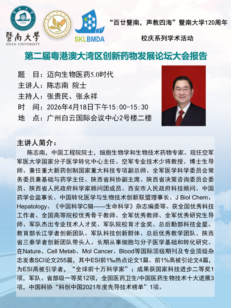 【百廿暨南,声教四海】校庆系列学术活动(四十四)——中国工程院院士陈志南:迈向生物医药5.0时代