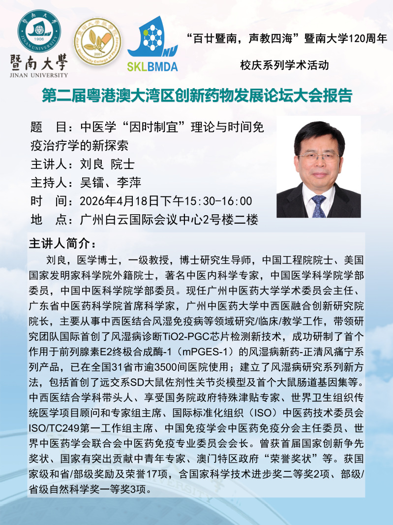 【百廿暨南,声教四海】校庆系列学术活动(四十五)——中国工程院院士刘良:中医学"因时制宜"理论与时间免疫治疗学的新探索