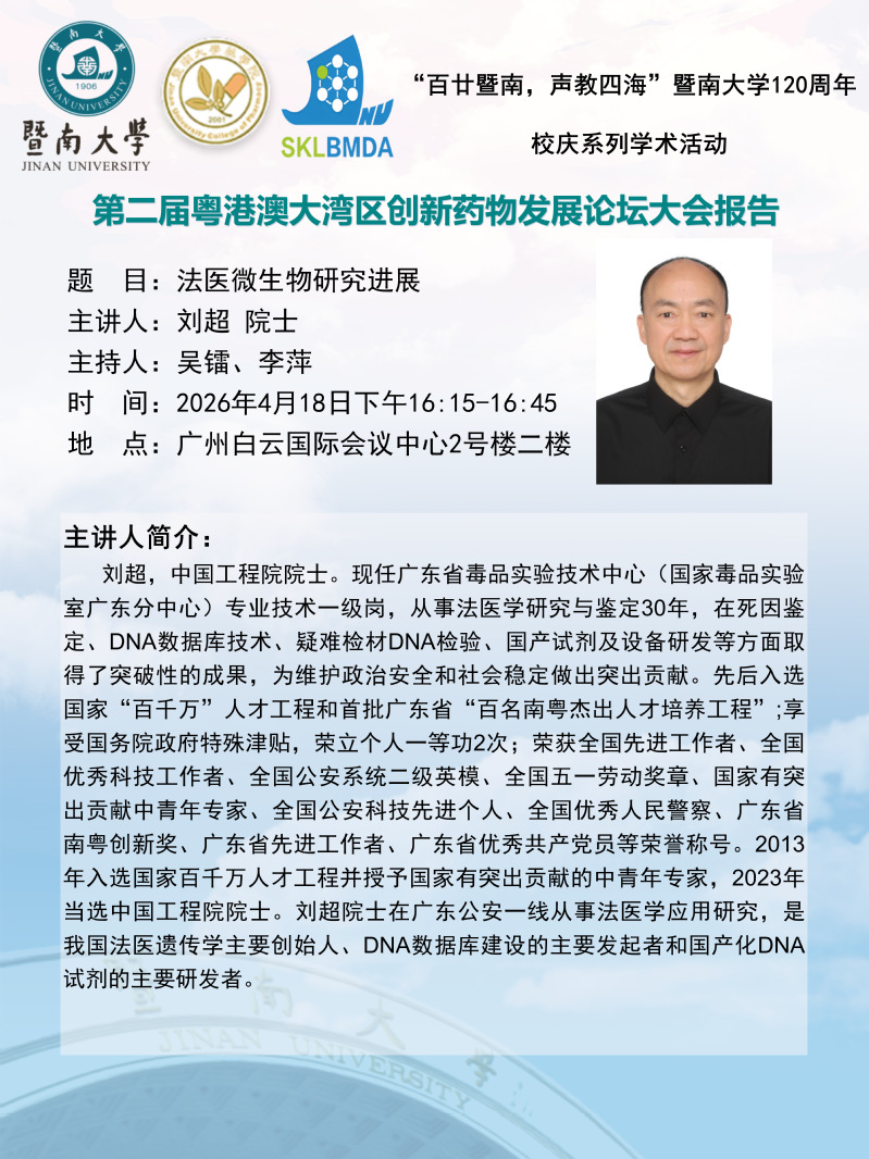 【百廿暨南,声教四海】校庆系列学术活动(四十六)——中国工程院院士刘超:法医微生物研究进展
