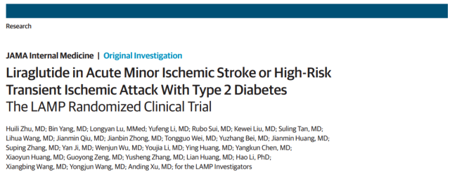 JAMA子刊发表!LAMP研究揭示GLP-1RA在轻型卒中/高危TIA二级预防的新证据