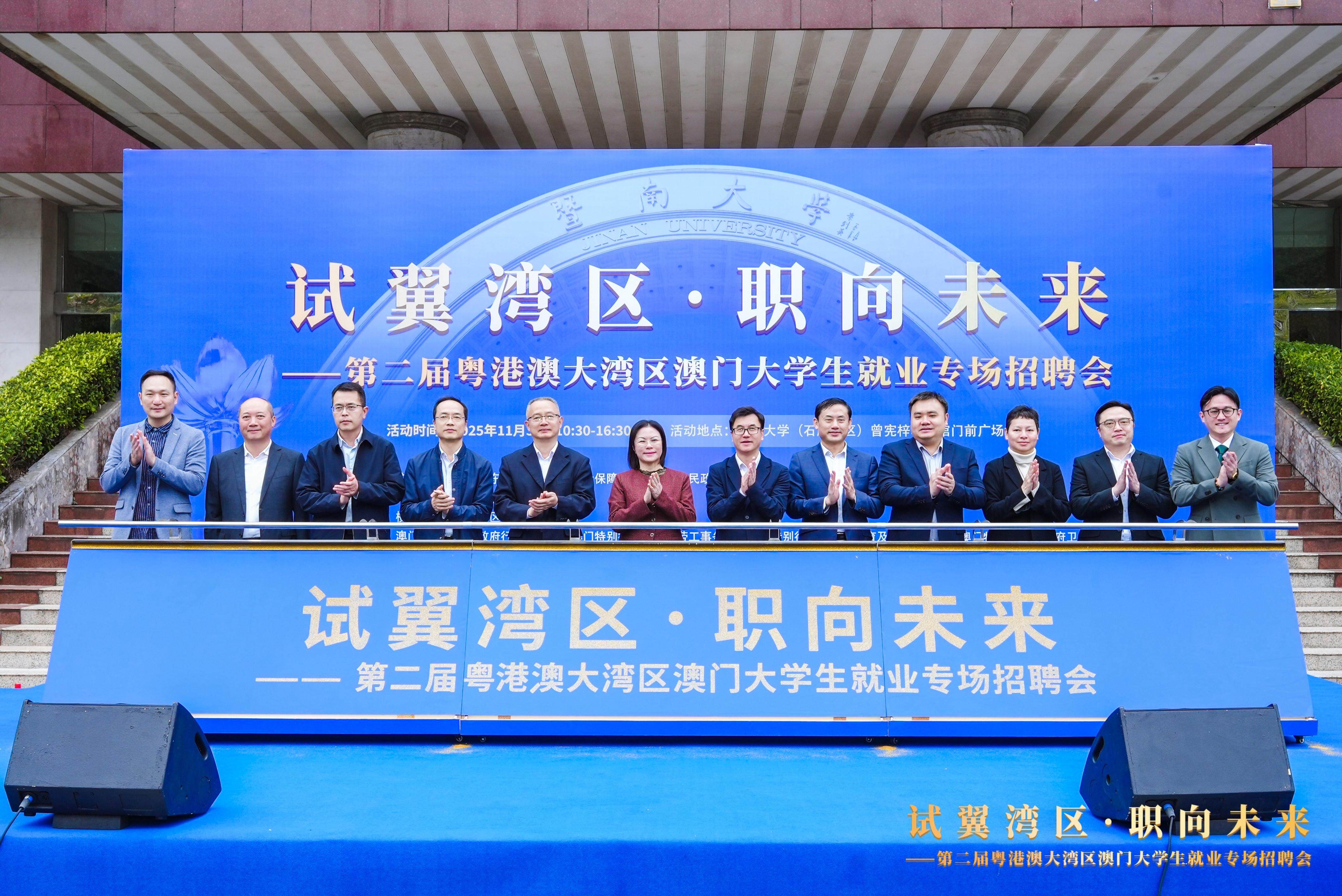 暨南大学党委常委、副校长顾乃华表示,暨南大学长期以来为澳门持续培养输送了2万余名校友,在政治、商业、医疗、新闻等各领域为澳门社会发展做出贡献,是澳门“一国两制”事业的重要人才库。本届招聘会旨在首届招聘会成功为澳门青年学子搭建起便捷高效的一站式就业实习对接平台的基础上,以更丰富的资源、更精准的服务,持续助推澳门青年融入大湾区发展。