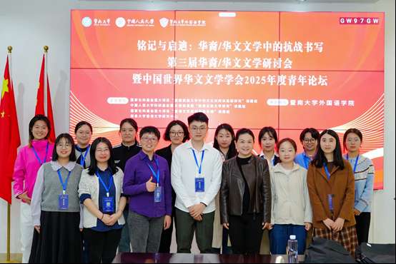 12月5日至7日,“第三届华裔/华文文学研讨会暨中国世界华文文学学会2025年度青年论坛”在广州举行。本届大会以“铭记与启迪:华裔/华文文学中的抗战书写”为主题,旨在系统梳理抗战文学在华裔与华文文学体系中的流变轨迹,探讨其在跨语际写作、离散叙事、文化传播、族群记忆建构与全球南方批评中的多重意义,推动抗战文学从“民族记忆”迈向“世界理解”的阐释。