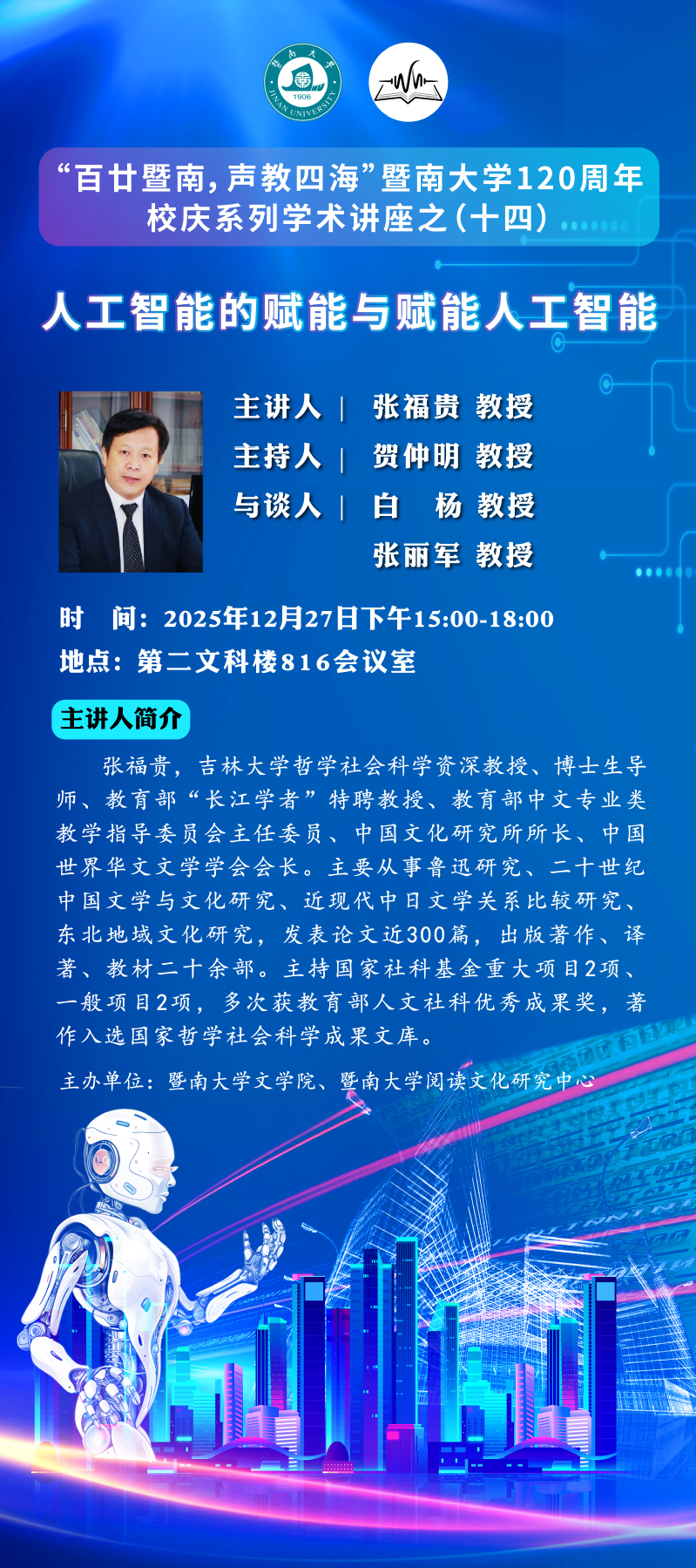 【百廿暨南,声教四海】校庆系列学术活动(十四)——人工智能的赋能与赋能人工智能