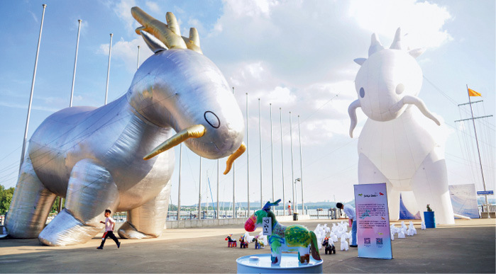 2023年9月17日,湖北省武汉市, 香港“小龙马环游世界”武汉站展示活动。“小龙马”由国际知名的中国香港跨界艺术家马兴文创作,源自中华文化中的“龙马”,代表华夏民族的主体精神和道德,并向世界推广中华民族自古以来所崇尚的进取向上、自强不息、奋斗不止的“龙马精神”,以及“共融”“仁爱”的信息