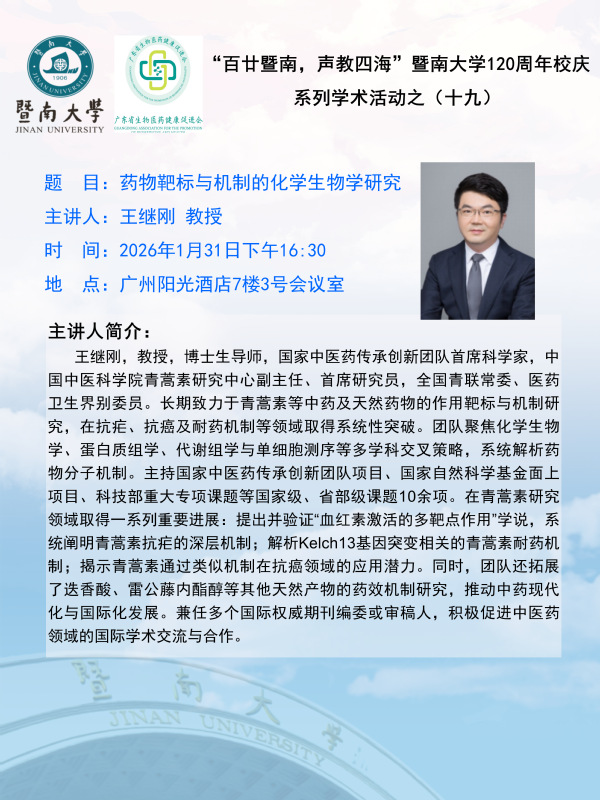 【百廿暨南,声教四海】校庆系列学术活动(十九)——药物靶标与机制的化学生物学研究