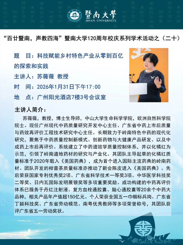 【百廿暨南,声教四海】校庆系列学术活动(二十)——科技赋能乡村特色产业从零到百亿的探索和实践